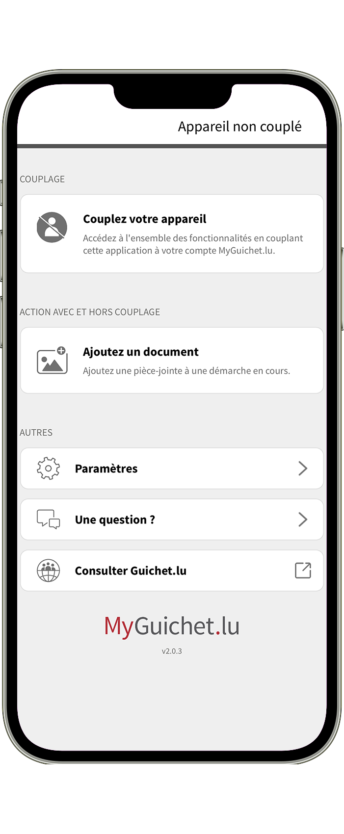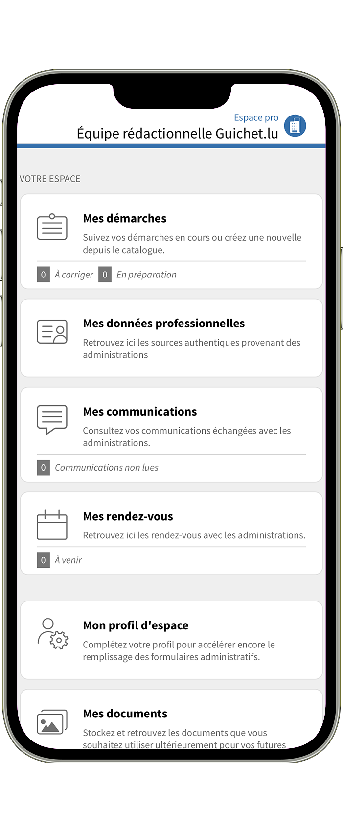 Mes démarches administratives où je veux, quand je veux, comme je veux !Téléchargez gratuitement notre application mobile MyGuichet.lu, qui facilite l’accès à vos démarches administratives en ligne ainsi que vos contacts avec les administrations et organismes publics luxembourgeois.