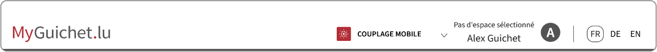Pour commencer la procédure de couplage par code QR, connectez-vous d’abord à MyGuichet.lu depuis le navigateur de l’autre appareil. Ensuite, cliquez sur le bouton "Couplage mobile" dans l’en-tête (header).